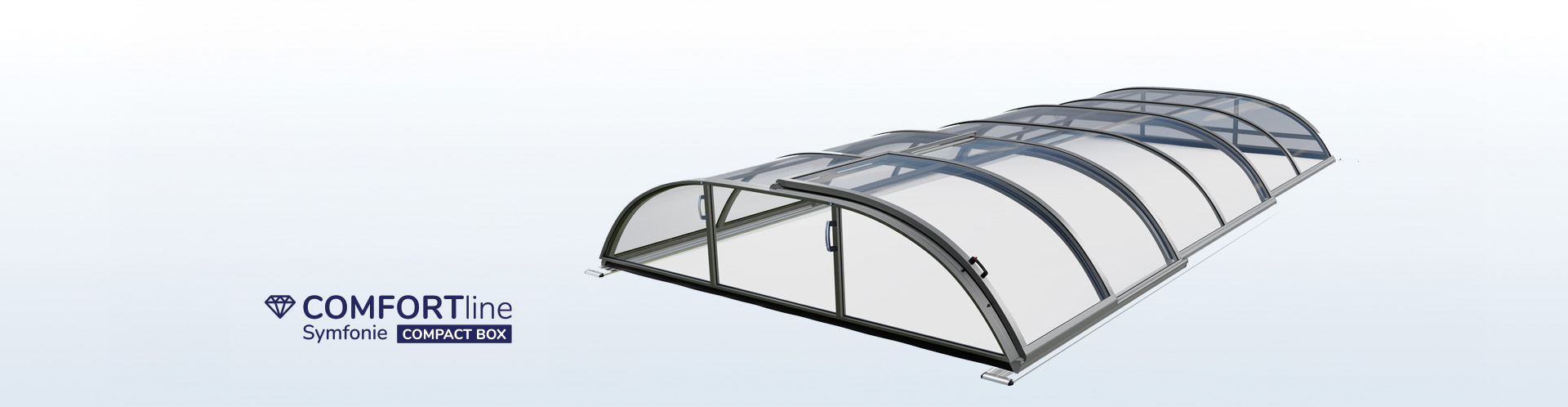 Symfonie Compact Box je elegantním a ekonomickým řešením vašeho bazénového zastřešení.